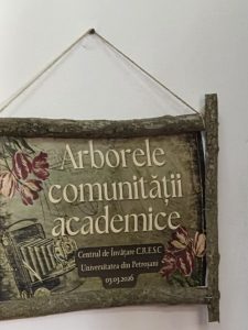 Un arbore realizat de artiștii de la noi a fost dezvelit și simbolurile au continuat să arate idei despre o comunitate unită în jurul unor valori. „Arborele comunității academice a pornit de la ideea centrului CRESC, care a inițiat ideea. Alături de noi a ajuns un artist plastic, Matei Vincze, care l-a realizat. Este un simbol între trecut, prezent și perspective și acest arbore, pe de o parte, evidențiază rădăcinile și istoria universității de aici, a comunității, trunchiul reprezintă prezentul, iar viitorul sunt crengile pe care îl realizăm împreună”, a mai spus prof univ dr Felicia Andrioni.