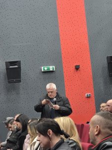 Printre cei care au fost în sală este și profesorul Valeriu Piscoi care, mai în glumă mai în serios, a spus ca, dacă se închid sălile de jocuri, va da în judecată Primăria: