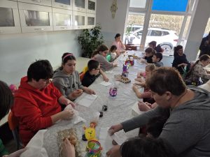 Una dintre cele mai așteptate sărbători de peste an este Paștele. La Casa Pollicino, copiii așteaptă nerăbdători ziua în care vopsesc ouăle și în care toți au venit pregătiți să facă cel mai frumos ou. I-au așteptat voluntarii și angajații casei, care le-au pregătit vase cu vopsele și le-au dat tot ce au ei nevoie. Așa că fiecare a creat câte un ou special, cu care să se mândrească. Sunt copii speciali, cu nevoi speciale, pentru care astfel de activități sunt absolut necesare. „Am vopsit un ou cu toate culorile. Am pus șervețel și am pus culori, apoi l-am șters”, mi-a explicat un copil de aici.
