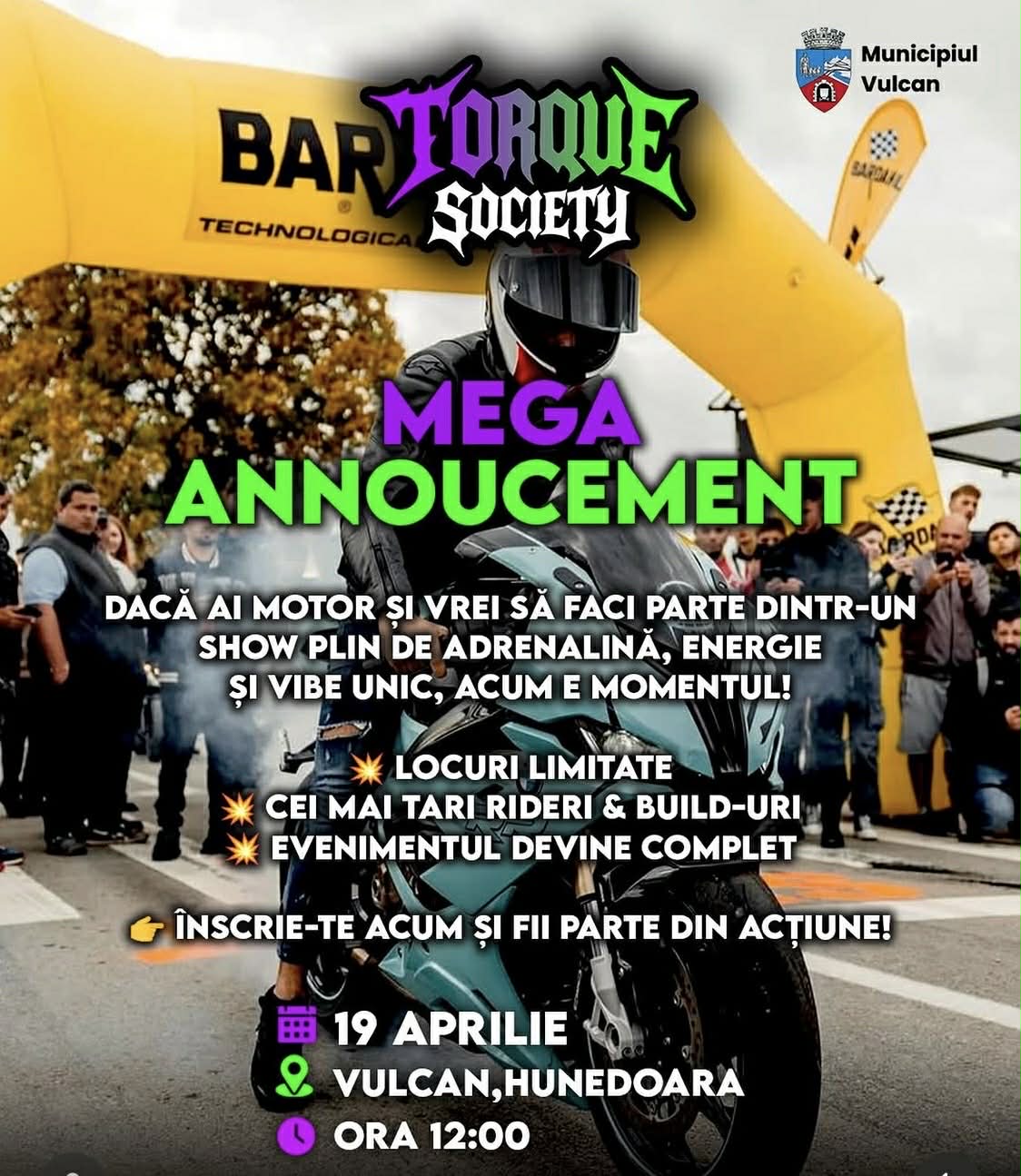 Un nou eveniment dedicat tinerilor și pasionaților de automobile va avea loc la finalul acestei săptămâni în municipiul Vulcan. „Torque Society”, unul dintre cele mai așteptate evenimente auto ale primăverii din Valea Jiului, promite să adune zeci de participanți și sute de spectatori într-o atmosferă plină de energie și adrenalină.