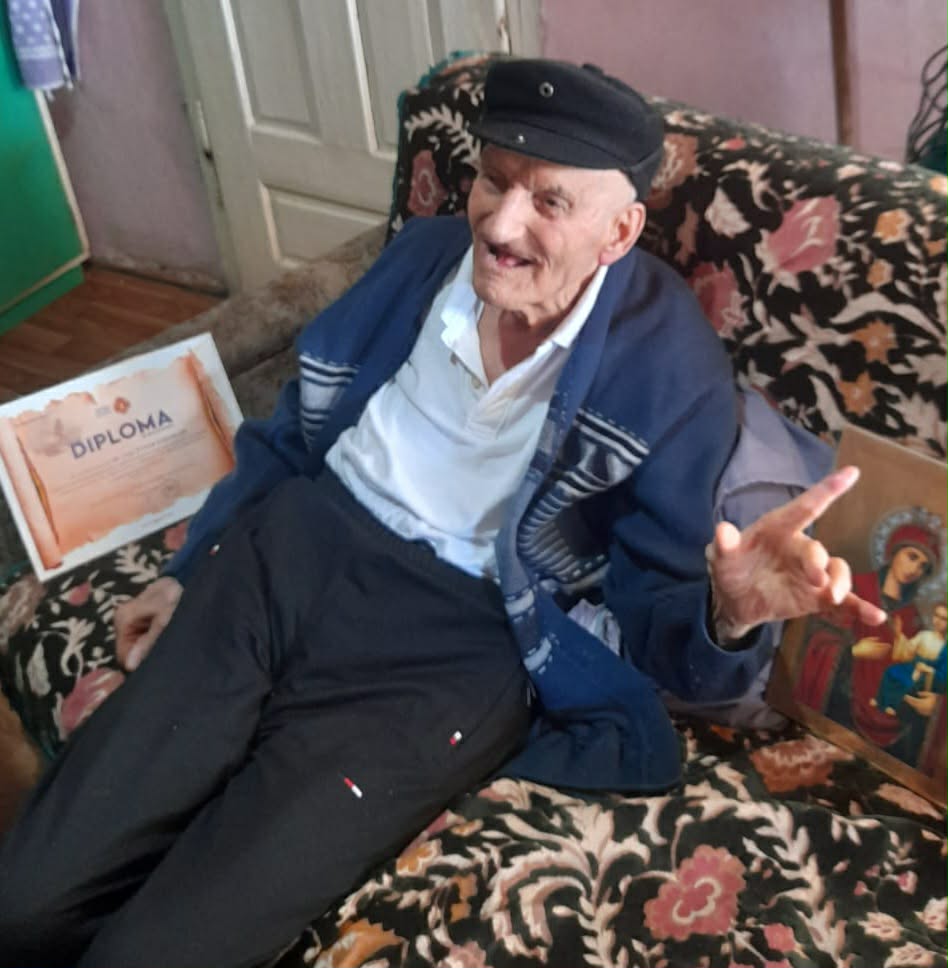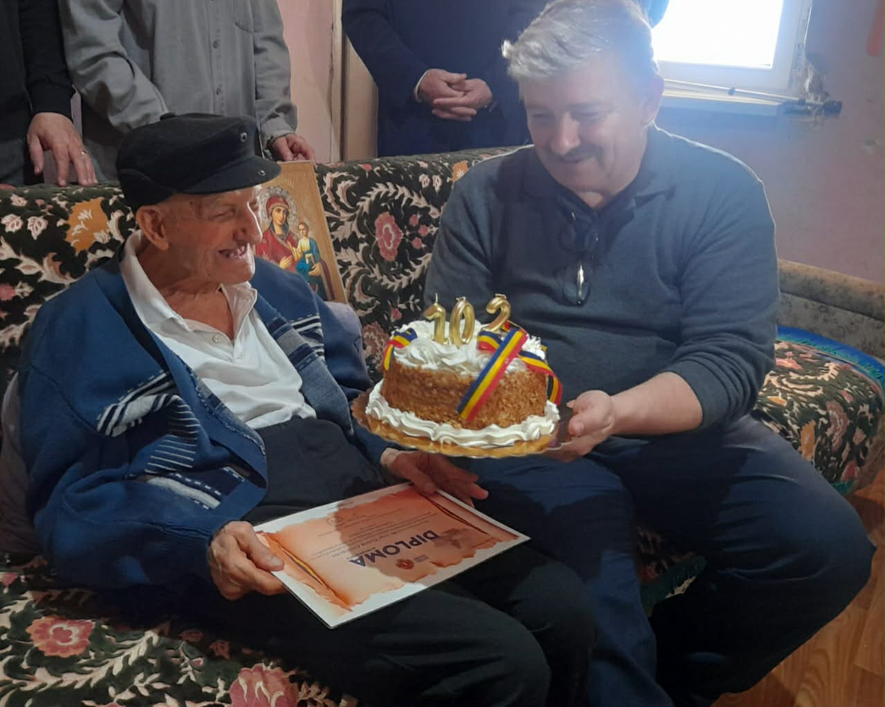 Maiorul (r) Tudor Gheorghe, a ajuns la venerabila vârstă de 102 ani, iar de ziua lui s-a bucurat de vizite și, ca de fiecare dată, a rememorat amintiri din război, acolo unde a participat în anii tinereții lui. Veteranul de la noi a spus, și de această dată, că doar și-a făcut datoria față de țară. „De ce îmi iubesc țara? Că e România noastră. Dar, câteodată, avem și dușmani. Să îi vadă Dumnezeu și să îi pedepsească! Să îi învățăm pe tineri să își iubească țara, că România este o țară foarte lăudată. Mă gândesc la Mărășești, la Oituz”, a spus Tudor Gheorghe, veteranul, sărbătorit la vârsta de 102 ani, care a spus că oamenii, când au scăpat de război, au pupat de zeci de ori pământul românesc.