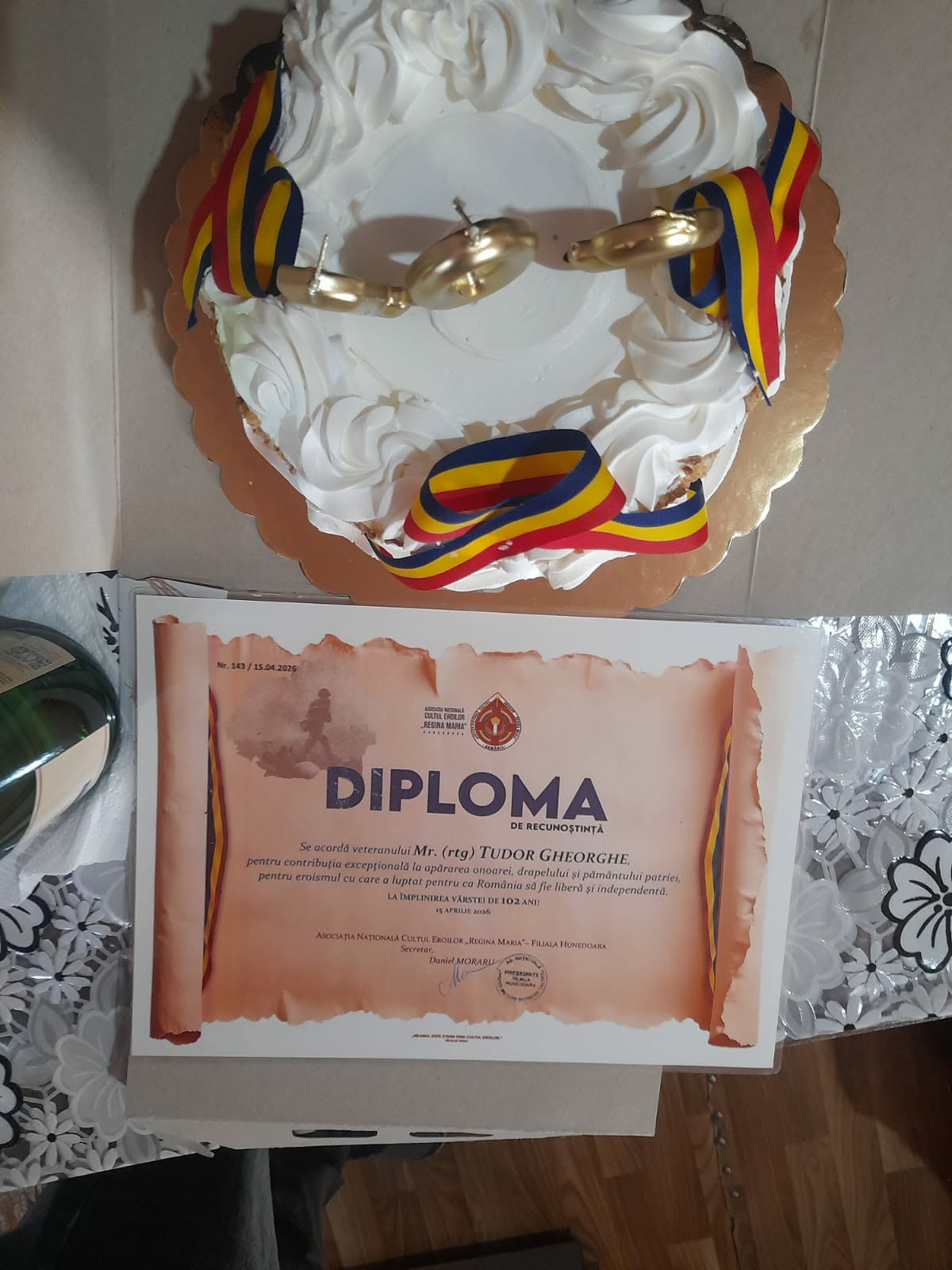 Ultimul veteran de război care locuiește în Valea Jiului, sus, pe un deal în Cartierul Ștefan din Lupeni, a fost sărbătorit la 102 ani. Este ultimul om care are acest statut în județul nostru și un om care azi a primit vizita oficialităților locale, dar și a celor de la Cultul Eroilor „Regina Maria”, care i-au oferit în dar un tort cu tricolor.