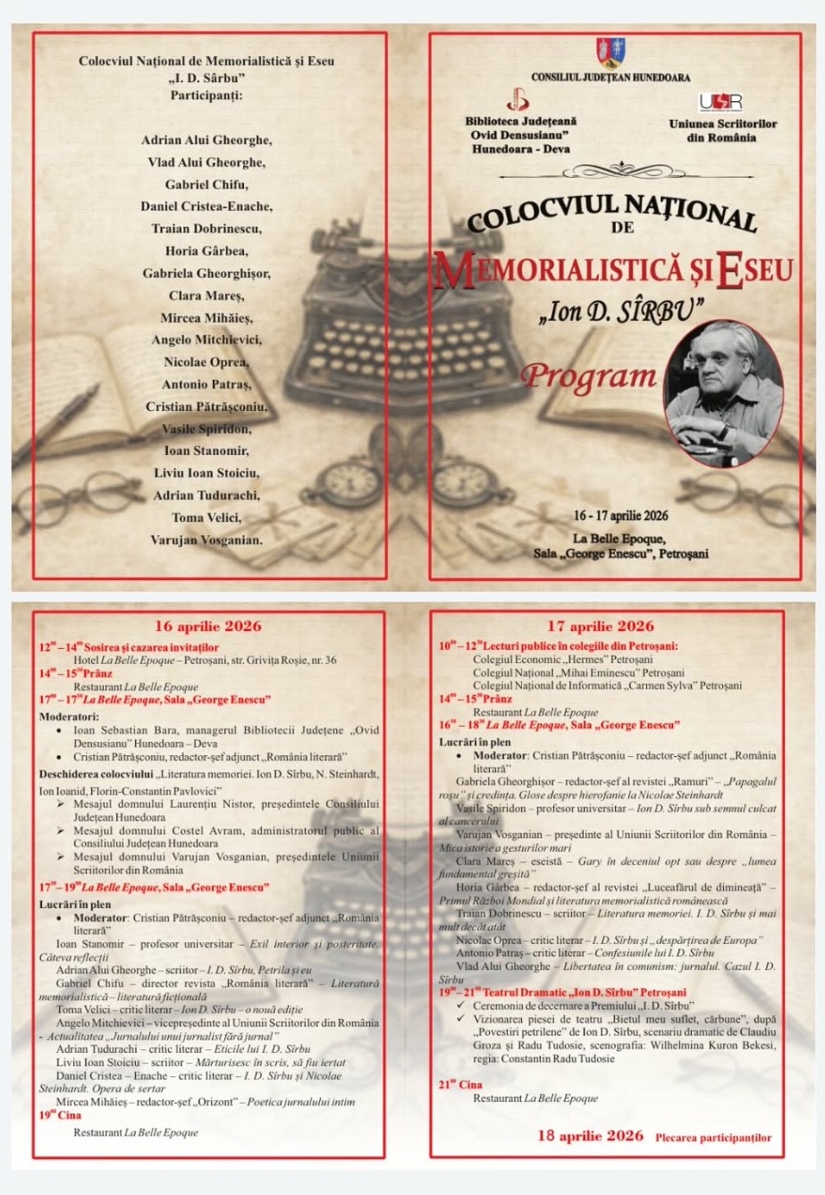 Joi, 16 aprilie, are loc la Belle Epoque prima parte a manifestărilor dedicate lui Ion Dezideriu Sîrbu, care vor continua și vineri, culminând cu premiera teatrală.