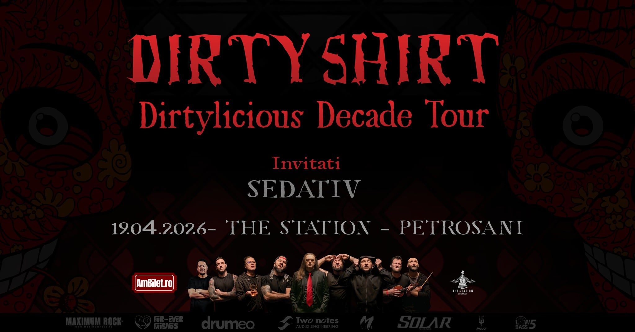 Dirty Shirt vine la Petroșani cu concertul Dirtylicious Decade Tour, la The Station, duminică, 19.04.2026. Invitați cei de la SEDATIV