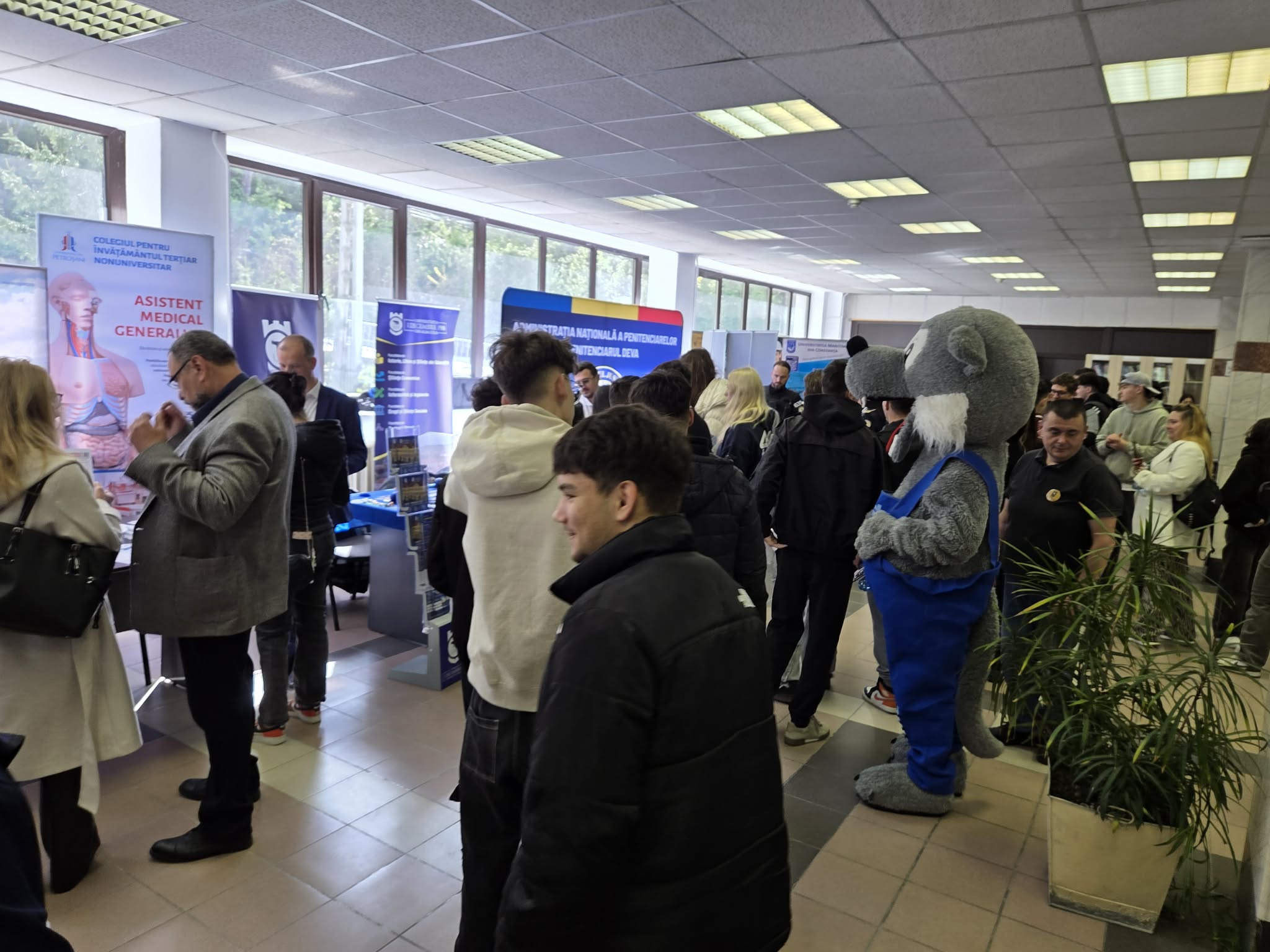 Peste 20 de unități de învățământ superior, școli post-liceale, ori chiar a doua șansă, au ajuns la Petroșani. Sunt din toate colțurile țării și vin să îi atragă pe liceenii de la noi și să le ofere sugestii pentru a urma o școală. Așa că, printre mascote, boluri cu bomboane, pixuri și chiar cătușe, am găsit și elevi care au venit să vadă ce să se facă ei, când vor fi mari.
